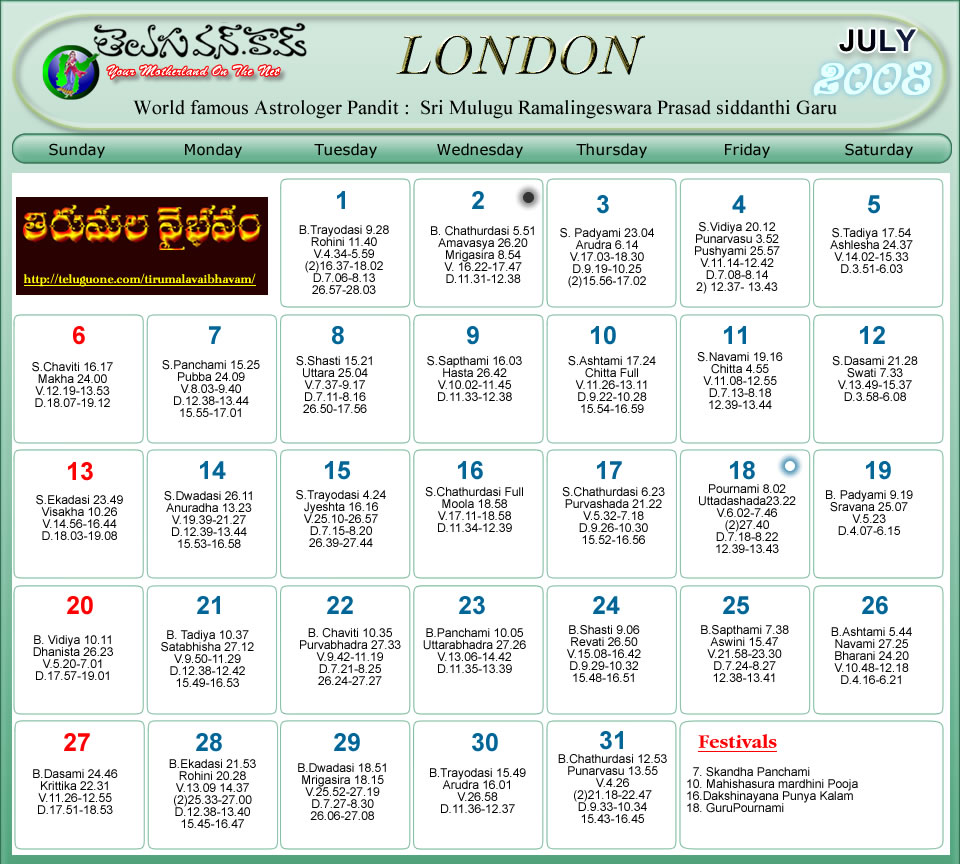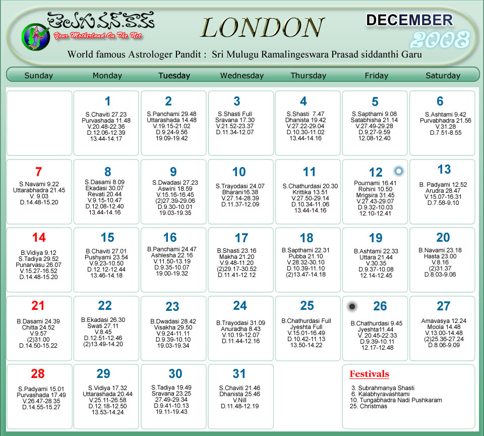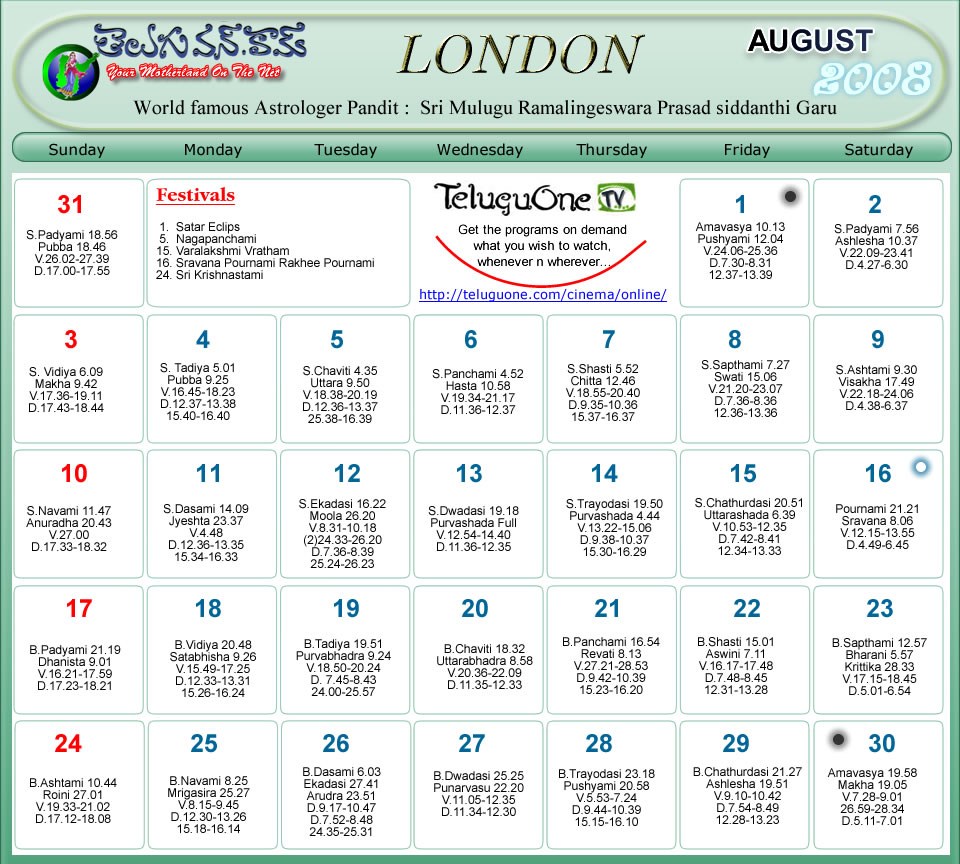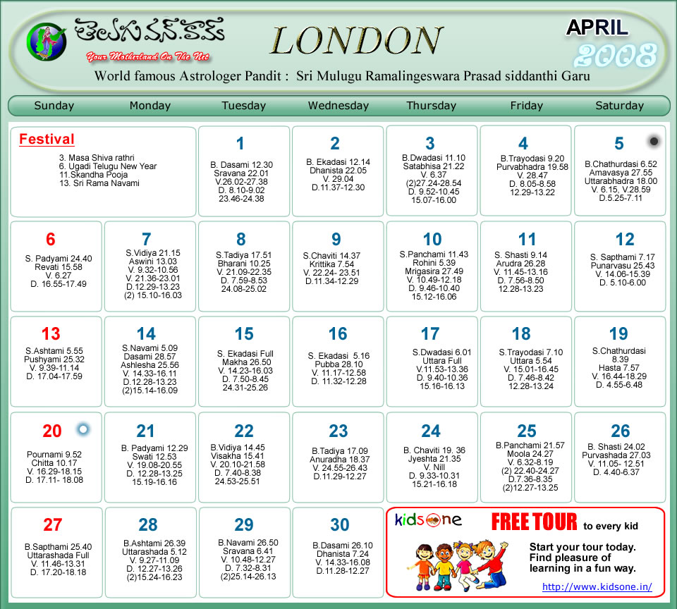 London Telugu Calendar 2008