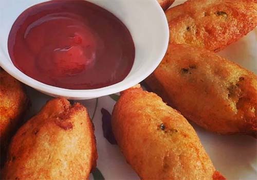 Then take it in the cup of your left hand and add some of the vegatable mixture in the middle of the bread and close the sides of the bread.