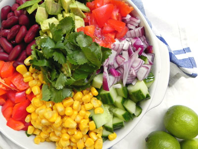 Refrigerate this colorful salad in an air-tight box overnight, and its tastier for your lunch, next day.