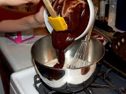 First take cream and sugar in a bowl and boil it. Then add melted dark chocolate and butter to this mixture and mix it well.