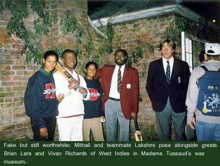 In fact Raj wasn't into sports at all; she was a dancer, having studied classical Indian dance in her native Hyderabad from the age of six. "Dance has always been my first love," she muses, "but I had to quit because I was making rapid strides in cricket." You can say that again.