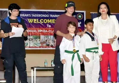 బాలీవుడ్ బాద్షా షారుక్ ఖాన్ తన చిన్నకొడుకు అబ్రామ్ను చూసి గర్వపడుతున్నాడు. ఎందుకంటే ఆదివారం (అక్టోబర్ 16) అబ్రామ్ తైక్వాండోలో గోల్డ్ మెడల్ సాధించాడు! అవును. ముంబైలోని కిరణ్స్ తైక్వాండో ట్రైనింగ్ అకాడమీలో జరిగిన తైక్వాండో ఇంటర్క్లాస్ కాంపిటిషన్లో అబ్రామ్ ఈ పతకాన్ని గెలుచుకున్నాడు. సోషల్ మీడియాలో ప్రత్యక్షమైన కొన్ని ఫొటోలు, వీడియోలలో అబ్రామ్ తైక్వాండోలో చేసిన విన్యాసాలను, ప్రత్యర్ధిపై పైచేయి సాధించిన వైనాన్ని మనం చూడొచ్చు. చివరగా, తన ఏజ్ గ్రూప్ పోటీలో ట్రోఫీని గెలుచుకొని, తండ్రి చేతుల మీదుగా పతకాన్ని అందుకున్నాడు.