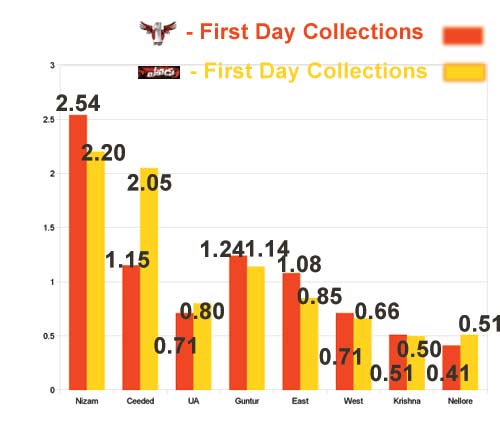 Ram Gopal Varma’s Rowdy movie starring Manchu Mohan babu and Mnachu Vishnu and actress Jayasudha in the lead has done well on the first day. The area wise report for Andhra Pradesh and Bangalore are featured in this list.