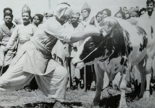 ఎన్టీఆర్ హీరోగా నటించిన తొలి చిత్రం 'పల్లెటూరి పిల్ల'. అందులో ఎద్దుతో పోరాడే సన్నివేశం ఉంది. "అసలే అది ఆస్ట్రేలియన్ బుల్.. జాగ్రత్త" అని డైరెక్టర్ బి.ఎ. సుబ్బారావు చెబుతూనే ఉన్నారు. "ఊరికే దాని కొమ్ములు పట్టుకుంటే చాలు.. కట్ చెప్తాను" అన్నారు. రామారావు దాని కొమ్ములు పట్టుకొని నిజంగానే దాన్ని ఎదుర్కొన్నారు. ఆ ఎద్దు ఊరుకోలేదు. ఆయనను ఎత్తి కిందపడేసింది. తన శరీరం బరువంతా కుడిచేతి మీద మోపడంతో చెయ్యి ఎముక విరిగిపోయింది. దాంతో ఆయన నొప్పితో అల్లాడిపోయారు. ఆయన పరిస్థితి చూసి చిత్తూరు నాగయ్య గ్లాసులో పచ్చటి ద్రవాన్ని పోసుకువచ్చి, "రామారావ్.. ఇది తాగిచూడు. నీకు బాధ తెలియకుండా ఉంటుంది" అన్నారు.