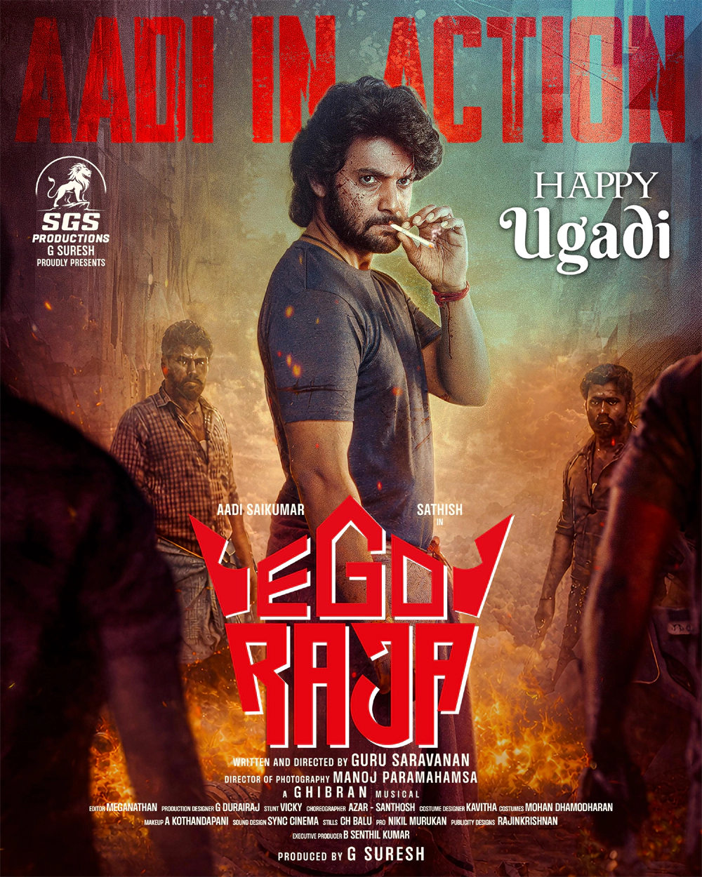 On the auspicious occasion of Ugadi, the makers unveiled a striking new poster featuring Aadi Sai Kumar in a fierce, action-packed avatar. Donning a lungi and exuding raw intensity, he is seen smoking a cigarette while locking a steely gaze on his adversaries, signaling high-voltage drama ahead.