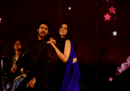 Lead pair Naveen Polishetty and Meenakshi Chaudhary energized the crowd by dancing to the songs Bhimavaram Balma and Raju Gari Pelli ro, from the film. Following the performance, they welcomed guests just like a real wedding reception. Appearing on stage as a "newlywed couple," the duo was the center of attraction. In a fun twist, journalists approached the stage like relatives to bless the couple, handing over "gift covers" and asking questions in return.