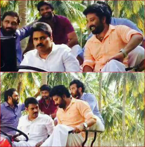 In the above picture, Pawan Kalyan is seen riding a tractor, wherein his on screen brothers are having chit-chat with him. Apparently, all the actors are having fun time shooting for the film.