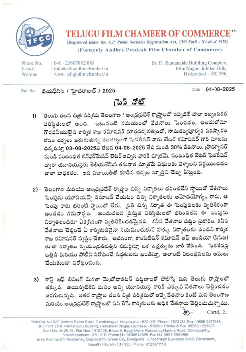 ఫిల్మ్ ఛాంబర్ విడుదల చేసిన ప్రెస్ నోట్ లో కీలక అంశాలు: