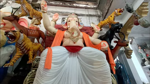 వినాయక చవితి(ఆగస్టు 31)కి ఇంకా నాలుగు వారాలే ఉండటంతో వినాయక విగ్రహాల తయారీ దాదాపు పూర్తి కావొచ్చింది. ఈ క్రమంలో భీమ్ రూపంలో ఉన్న గణేష్ విగ్రహాల ఫోటోలు ప్రస్తుతం సోషల్ మీడియాలో వైరల్ గా మారాయి. చేతుల్లో కాగడాలు పట్టుకొని జంతులతో పాటు ట్రక్ లో నుంచి భీమ్ దూకే షాట్ ని తలపించేలా ఉన్న ఆ విగ్రహం ఆకట్టుకుంటోంది. ఇంకా ఆ విగ్రహానికి రంగులు వేయడం పూర్తికాలేదు. రంగులు వేశాక ఆ విగ్రహం మరింత అందంగా కనిపిస్తుందనడంలో ఎలాంటి సందేహం లేదు. మరో విగ్రహాన్ని కూడా కూడా ఇలా 'ఆర్ఆర్ఆర్' ఇంటర్వెల్ సీన్ కాన్సెప్ట్ తోనే రూపొందించారు.