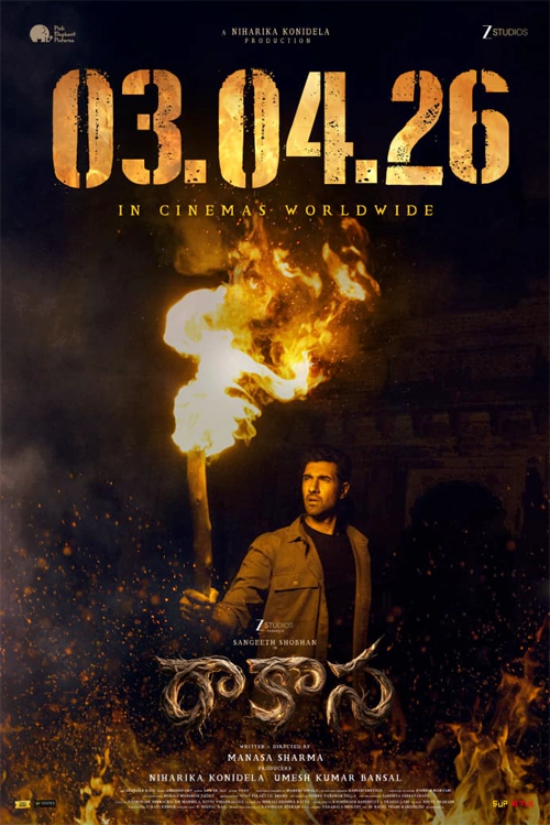 The makers of Raakaasaa have officially announced that the film will release in theatres worldwide on April 3, 2026. Presented by Z Studios and produced under the banners of Pink Elephant Pictures, the film is written and directed by Manasa Sharma, with Niharika Konidela and Umesh Kumar Bansal serving as producers.