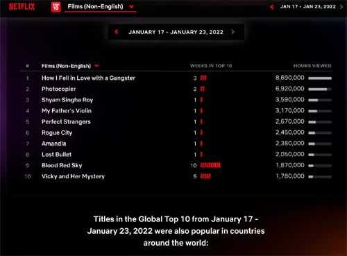 ఆ వారం టాప్-10 లిస్ట్ లో మరే ఇతర భారతీయ సినిమా లేకపోవడం గమనార్హం. థియేటర్స్ లో సూపర్ హిట్ గా నిలవడమే కానుందా ఓటీటీలో ఈ రేంజ్ రెస్పాన్స్ వస్తుండటంతో 'శ్యామ్ సింగ రాయ్' టీమ్ సంతోషం వ్యక్తం చేస్తోంది.
