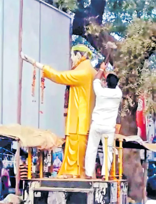 ఆంధ్రప్రదేశ్ లో వైసీపీ అధికారంలోకి వచ్చాక లెజెండరీ యాక్టర్, దివంగత ముఖ్యమంత్రి నందమూరి తారక రామారావు విగ్రహాలపై దాడి ఘటనలు చోటుచేసుకున్నాయి. గతంలో నెల్లూరు జిల్లా కావలిలో ఎన్టీఆర్ విగ్రహం ధ్వంసం ఘటన తీవ్ర వివాదాస్పదమైన సంగతి తెలిసిందే. తాజాగా గుంటూరు జిల్లా దుర్గిలోనూ మరో ఘటన చోటుచేసుకుంది. పట్టపగలు అందరూ చూస్తుండగానే ఓ వైసీపీ నాయకుడు ఎన్టీఆర్ విగ్రహాన్ని ధ్వంసం చేయడం సంచలనంగా మారింది.