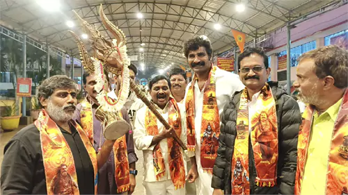 అఖండ 2 లో అఘోర గా బాలకృష్ణ ఉపయోగించిన త్రిశూలాన్ని, ఢమరుకాన్ని తీసుకొని ఆ అఖండ నాధుడైన పరమేశ్వరుడు కొలువై ఉన్న పంచ శైవ క్షేత్రాలని దర్శించే మహా కార్యక్రమానికి శ్రీకారం చుట్టారు. అందులో భాగంగా నిన్న శ్రీకాళహస్తి లో కొలువై ఉన్న'శ్రీ కాళహస్తీశ్వరుడ్ని' దర్శించుకుని పూజలు నిర్వహించారు. ఈ సందర్భంగా బాలకృష్ణ స్టేట్ వైడ్ అభిమాని,హెల్పింగ్ హ్యాండ్ అధ్యక్షుడు జగన్ తన బృందం తో కలిసి మాట్లాడుతూ అఖండ 2 విజయవంతం అవ్వాలని మొదట శ్రీకాళహస్తీశ్వరుడ్ని దర్శించుకున్నాం. ఇక్కడ నుంచి కంచి, అరుణాచలం, జంబుకేశ్వరం,చిదంబరం క్షేత్రాలని వెళ్లి పరమేశ్వరుడిని దర్శించుకొని అఖండ 2 కి ఘన విజయాన్ని ప్రసాదించాలని కోరుకుంటామని తెలిపారు.