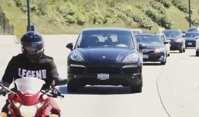 ఈ ఫోటో చూశారా..ఫ్రంట్ కూర్చుని అభివాదం చేస్తున్నది నందమూరి బాలకృష్ణ. వెనుక వస్తున్నది ఆయన కాన్వాయ్. ఇదంతా ఆంధ్రప్రదేశ్ లోని హైవే మీద అనుకుంటే మీరు పొరబడ్డట్టే. అమెరికాలోని సీటెల్ లో ఈ సంఘటన జరిగింది. బసవతారకం క్యాన్సర్ హాస్పిటల్ కోసం నిథులు సేకరించడానికి అమెరికాలో పర్యటిస్తున్నాడు బాలయ్య. ఆయన అక్కడకు చేరుకున్న క్షణం నుంచి, అమెరికాలో పర్యటించే వరకూ అన్నీ భారీగా, ఆయన స్థాయికి తగ్గట్టుగా ఎరేంజ్ చేశారు బాలయ్య అభిమానులు.