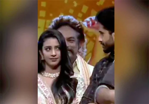 అక్కినేని హీరోలు నాగార్జున, నాగ చైతన్య నటించిన 'బంగార్రాజు' సినిమా సంక్రాంతి కానుకగా జనవరి 14 న ప్రేక్షకుల ముందుకు రానుంది. ఈ నేపథ్యంలో తాజాగా నిర్వహించిన మ్యూజికల్ నైట్ ఈవెంట్ లో.. ఈ సినిమాలో స్పెషల్ సాంగ్ లో సందడి చేయనున్న యంగ్ బ్యూటీ దక్ష నగార్కర్ కి, చైతన్యకి నడుమ ఓ ఆసక్తికర సంఘటన జరిగింది. నాగార్జున మాట్లాడుతున్న సమయంలో వేదికపై ఉన్న చైతన్య వెనక్కి తిరిగి దక్ష నాగర్కర్ వైపు చూసి స్మైల్ ఇచ్చాడు. దీంతో ఆమె కనుబొమ్మలు ఎగరేస్తూ కొంటెగా నవ్వగా.. చైతన్య సిగ్గుపడుతూ తల దించుకున్నాడు. ప్రస్తుతం ఈ క్యూట్ వీడియో సోషల్ మీడియాలో వైరల్ గా మారింది.