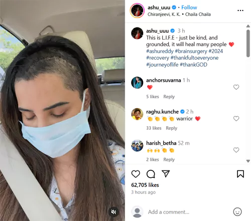 కొద్ది నెలల క్రితం అషు రెడ్డికి బ్రెయిన్ సర్జరీ జరిగింది. ఈ విషయాన్ని ఆ మధ్య ఒక షోలో స్వయంగా ఆమెనే చెప్పింది. ఆ సమయంలో తన కెరీర్ క్లోజ్ అయింది అనుకున్నానని చెప్పుకుంటూ ఎమోషనల్ అయింది. అయితే ఈ సర్జరీ గురించి తర్వాత అషు పెద్దగా స్పందించలేదు. కానీ ఇప్పుడు ఇన్ స్టాగ్రామ్ వేదికగా తన బ్రెయిన్ సర్జరీకి సంబంధించిన వీడియోను షేర్ చేసింది. ఆ వీడియోలో అషు రెడ్డి జుట్టు తొలగించి సర్జరీ చేయడం, ఆ సమయంలో ఆమె బాగా ఎమోషనల్ అవ్వడం, అలాంటి సిచువేషన్ నుంచి అషు కమ్ బ్యాక్ ఇవ్వడం చూడవచ్చు. ఈ వీడియో ఎంతో ఎమోషనల్ గా ఉంది.