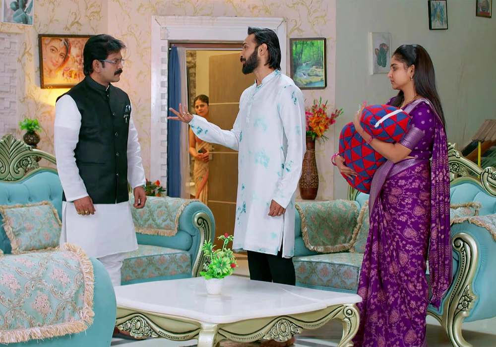 మరొకవైపు అపర్ణ, ఇందిరాదేవి కలిసి పంతులిని పిలిపించి పాప జాతకం చూడమని చెప్తారు. పాప జాతకం చాలా బాగుందని పంతులు చెప్తాడు. అప్పుడే రేఖ అక్కడికి వస్తుంది. వాళ్ళు బారసాల గురించి మాట్లాడుకుంటుంటే.. కావ్య అసలు తన బిడ్డ కాదని అంటుంటే బారసాల అంటున్నారా అని రేఖ అంటుంది. ఎప్పుడు ఎందుకు ఏదో ఒకటి మాట్లాడుతావని తనపై కోప్పడుతుంది ఇందిరాదేవి.