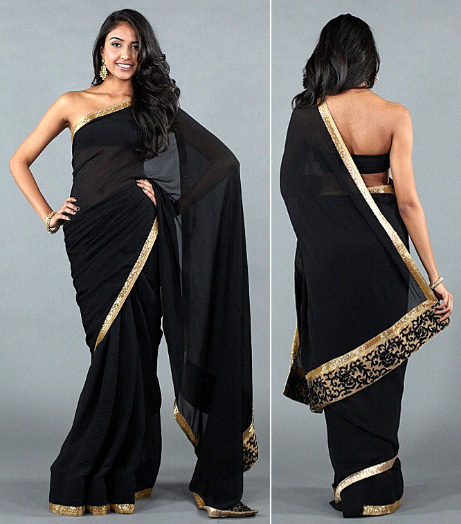 * Simple is graceful A simple and elegant sari looks wonderful for semi-formal occasions. Combined with the right accessories, it looks graceful enhancing the curves and pleats of your designer sari. A plain sari is really eye-catching and looks graceful on a tall and slim woman. A few plain saris would be a great addition to your semi-formal wardrobe.
