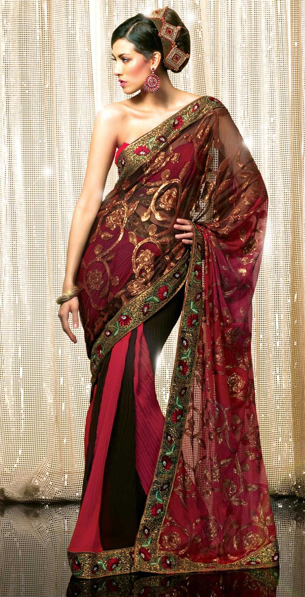 Look mesmerizing with this maroon faux georgette saree crafted beautifully. This lovely saree is ornamented beautifully in various unique booti and patterns.