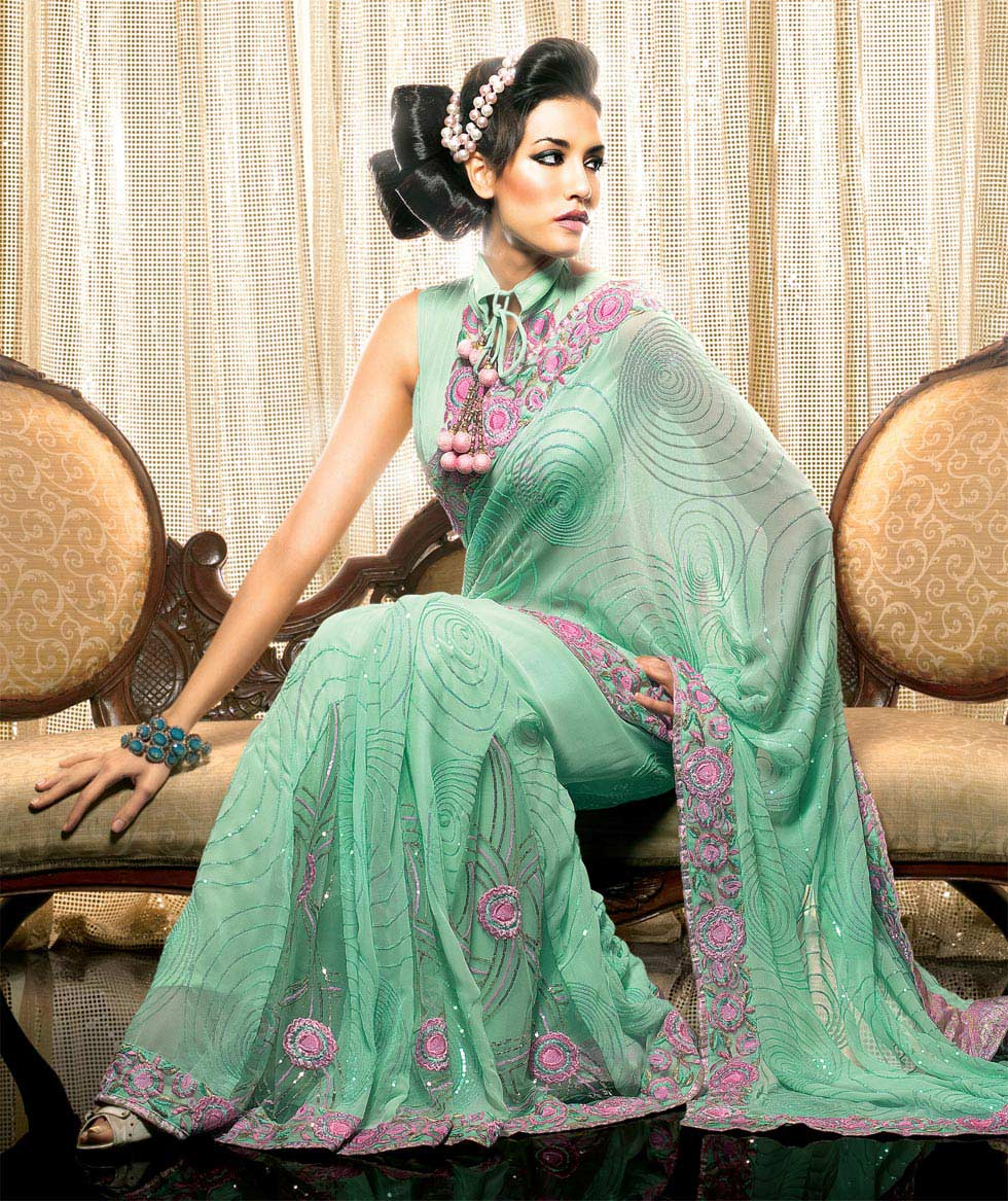 Green Faux Georgette Saree With Blouse