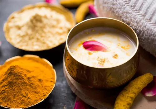 శెనగపిండి + పెరుగు + కొద్దిగా నిమ్మరసం..