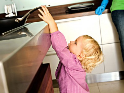 If you have cleaning supplies and detergents in low cabinets, move them to the very top ones instead.