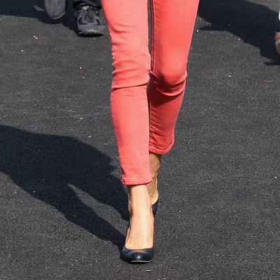 టై-అప్స్ లేదా బ్యాలెట్ షూస్, వెడ్జెస్ లేదా బాక్సీ హీల్స్ బాగా నప్పుతాయి.