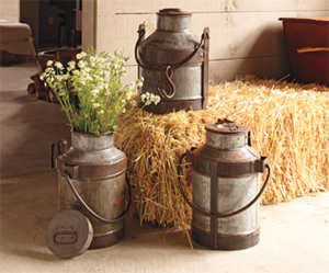 Old milk cans can be used as planters, terracota lamp holders can be used to light up the space with LED Candles to stay accident proof.