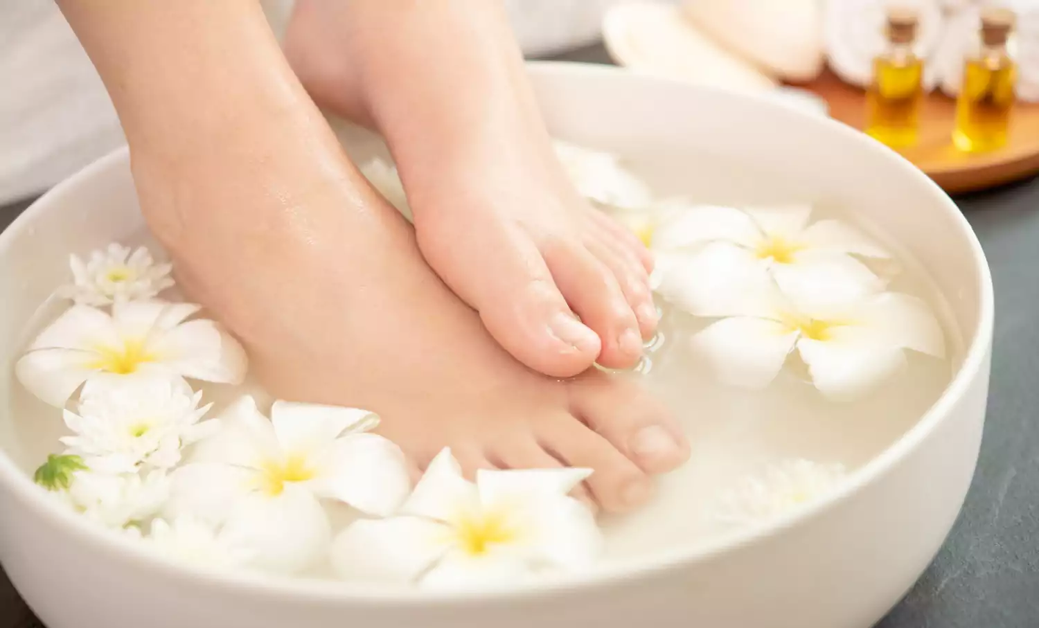 పాదాలు చీలమండల వరకు మునిగేంత గోరువెచ్చని నీటిని ఒక టబ్ లేదా పెద్ద గిన్నెలో తీసుకోవాలి. కొద్దిగా బాత్ సాల్ట్, నచ్చిన ఎసెన్షియల్ ఆయిల్ కలపాలి. ఇవి లేకపోతే కొద్దిగా రాళ్ల ఉప్పు అయినా వేసుకోవచ్చు. అలాగే కాస్త షాంపూ కూడా వేసుకోవచ్చు. కావాలనుకుంటే కొన్ని చిన్న నునుపైన గులకరాళ్లను కూడా వేసుకోవచ్చు. ఈ గులకరాళ్లు పాదాలు నీటిలో ఉంచినప్పుడు స్మూత్ గా మసాజ్ చేసినట్టు అనిపిస్తాయి. పాదాలను 15-20 నిమిషాల పాటు నీటిలో నానబెట్టి విశ్రాంతి ఇవ్వాలి. ఆ తర్వాత ఒక టవల్తో పూర్తిగా ఆరబెట్టాలి.
