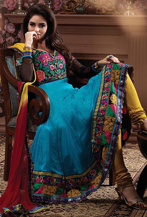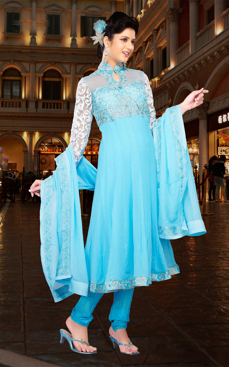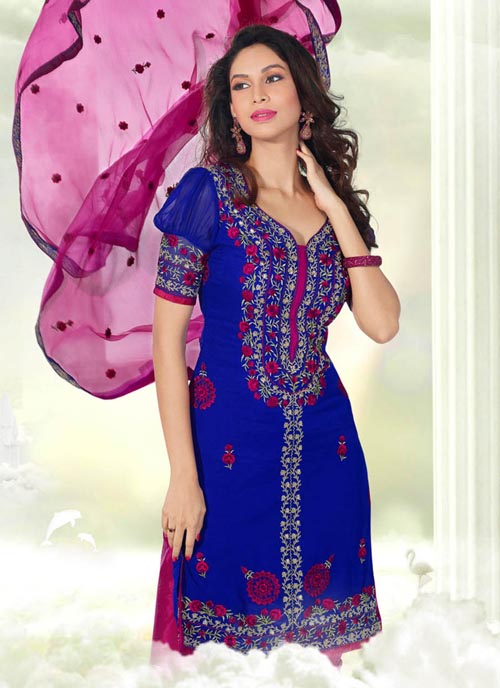 పాపులర్ అయిన ఇంకా అవుతున్నా డ్రెస్సులే Blue Georgette Salwar Kameez.