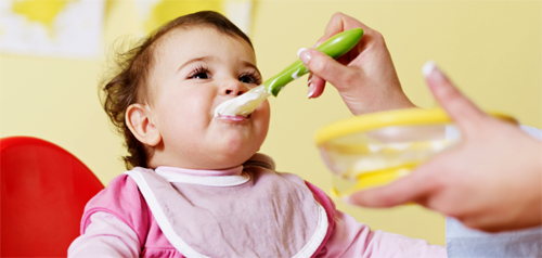 Cereals which are low in sugar are very good for the babies. The baby can either chew or suck on the cereal. Bread can be toasted lightly and cut into small shapes before feeding the baby. Do not feed fresh bread to the baby as it can choke the baby or even stick to the roof of the mouth.