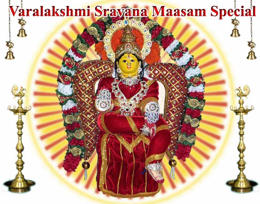 The 4 Fridays in this month or the 'Sravanasukravaraalu' are dedicated to Goddess Lakshmi and Indian women wake up early in the morning to worship the Goddess. By performing the Varalakshmi Vratam they enjoy the grace and favour of the Goddess Lakshmi who grants abundance and prosperity and longevity of their husbands.