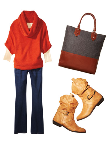 * A mid-sized bag complements the outfit, and a handheld tote or slouchy hobo is casual, but when added to classic separates, the look becomes smart casual. An oversized bag or evening clutch would look out of place.