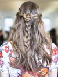 Summer Rosettes for your hair The braided rosette hairstyle is a very fresh and summery and this beautiful and very fairy princess kind of look is easy to do. Follow the steps given below and team it up with floral summer pinafore dress and add a few fresh flowers to your hair, for that fairytale look. It is easy, effortless and eye-catching. Step 1 : Spray locks with water sprat and scrunch gently for the wavy look. You need to get loose curls and if more movement is desired, curl random strands around a styling wand for 10 seconds, to create loose, natural curls. Step 2: Beginning in the right temple, pick up three strands of hair and twine together in a classic plait. Work to the ends and secure with a hair band, then repeat on the left. Pull the two braids around the center of the head, and tie them back of the head. Step 3 : Pull out a thick tuft of hair between the two plaits and twist it in the shape of a circle and pin it in place. Create a third braid, directly below the rose from three new strands of hair.