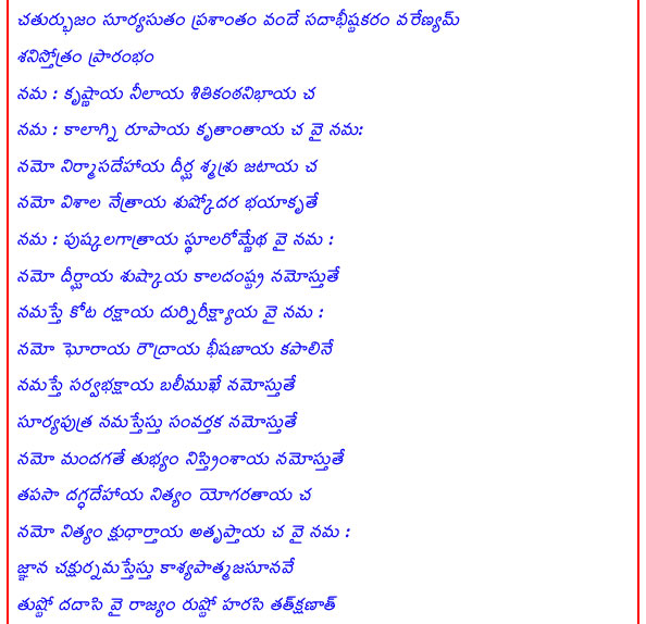 Dasaratha Krutha Shani Stothram
