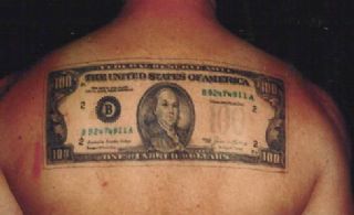 shaking her head in disdain;"Why on earth would an accountant get a hundred dollar bill tattooed on his privates?"