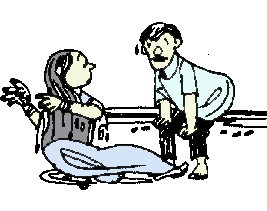 ఒక అమ్మాయి నదిలో పది మునిగిపోతూ " రక్షించండి... రక్షించండి...” అని అరుస్తూ చేతులను పైకి అటూ ఇటూ ఆడిస్తుంది.