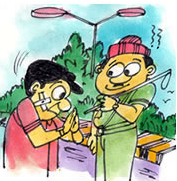 నా ముందు నుండి వెళుతున్న ఓ మోటారుసైకిలు ఆసామి నేను చూస్తుండగానే దబ్బున బైక్ తో సహా కిందపడిపోయాడు.. అది గ్రహించి అరెరే అని అనుకుని నా బైకుని ఆపేయడానికి నేను చేసిన ప్రయత్నం సగం కూడా ఫలించకముందే నేను కూడా సరిగ్గా అతను పడిపోయినట్లుగానే పడిపోయాను..
