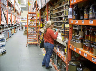 At Home Depot, Mary saw a beautiful bathroom faucet while she was waiting for Walt, the manager, to finish waiting on a customer.