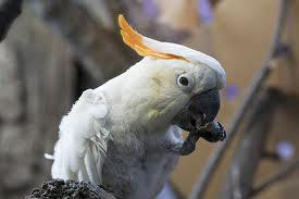 A young woman was walking past a pet shop and saw an exotic, white cockatoo for sale.