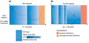Another feature that came to light concerned the CD8 cells called cytotoxic/suppressor cells. Using specialised markers, a defect has been found specifically in the killing function. Although there is not much of a quantitative change, i.e. the absolute number of CD8 cells may not be affected, a qualitative change is noted. These CD8 cells are incapable of CTL function of killing the virus-infected cells; instead, the majority of these cells act as 'suppresor' cells, further diminishing the immune system. Marked reduction is also noted in the number of NK cells which perform a very important function of killing cells which are cancerous or are infected with HIV.