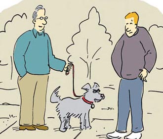షాపు కీపర్: లేదు, నా కుక్క కరవదు.