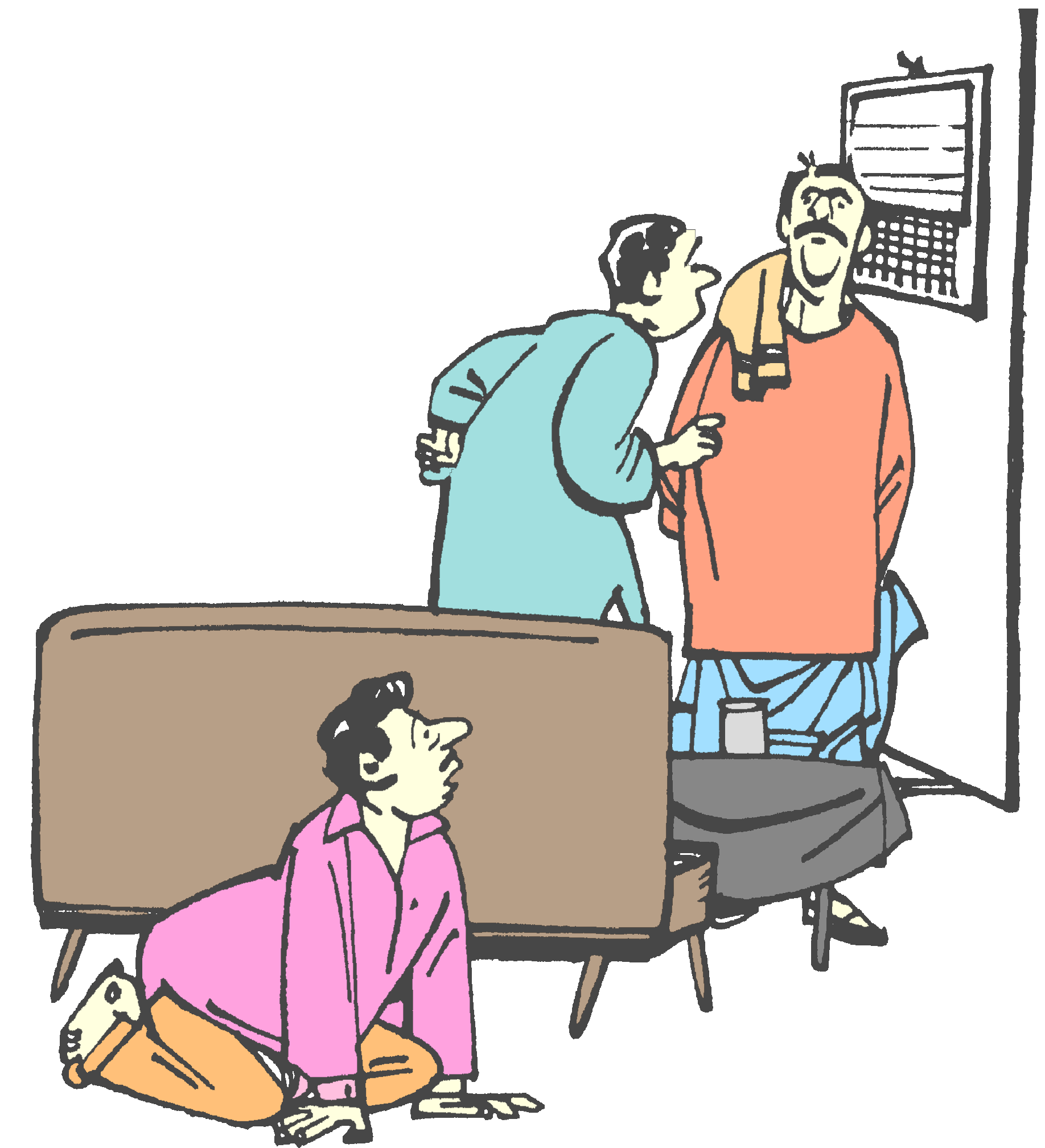 “అదేమిటీ? సోఫా మీద కూచుంటారు కానీ సోఫా వెనకాల కూచోవడమేమిటీ ?”