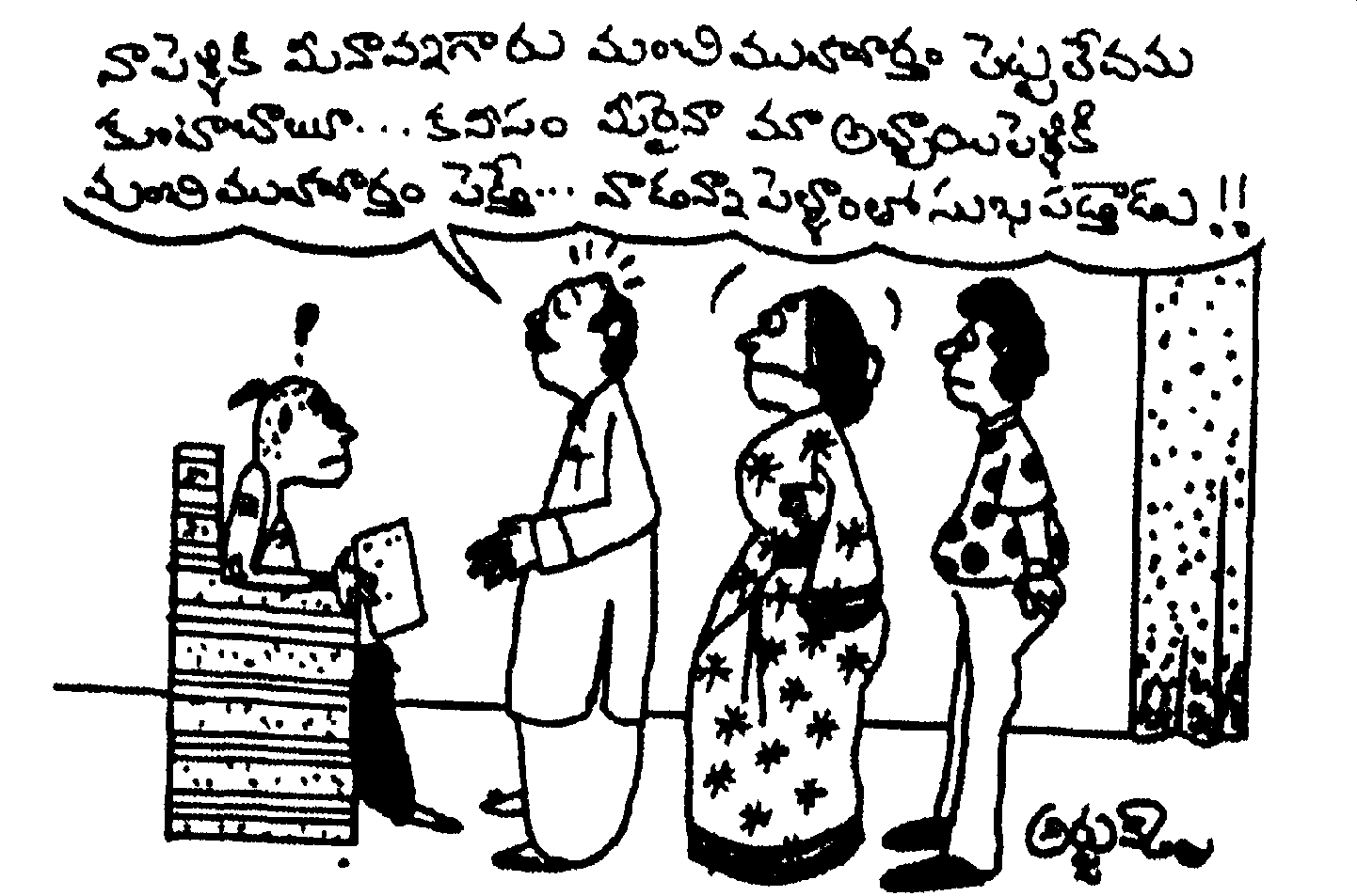 “పెళ్ళికొడుకుని కాబట్టే పెళ్లి కొడుకుగా ముస్తాబవుతున్నానురా చవటా "అంటూ కామేశం బాబాయ్ అనంత్ ను జెల్లకాయ కొట్టబోయేడు. ఇది జోకో, సీరియస్సో అనంత్ కు అర్థం కాలేదు.