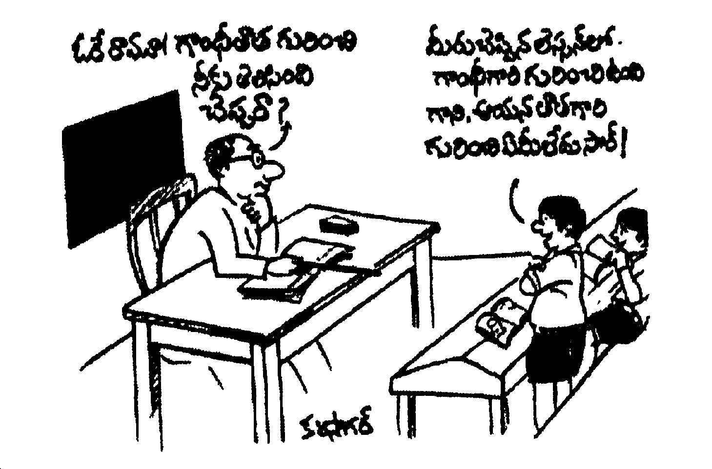 “ఏరా అనంతూ,కామేశం గాడు అక్కడ లవ్ ఎఫయిర్స్ నడుపుతుంటే నువ్వు గాడిదలు కాస్తున్నావా ?కనిపెట్టి నాకు ముందుగానే చెప్పవద్దా ? పోయిపోయి దోసెలు పోసేదాన్నా వరించడం "అంటూ అత్తయ్య ఆ సుబ్బి వంశాన్ని తిట్టనారంభించింది. దోసలు కాదు పెసరట్లు అని సవరించబోయి అనంత్ మరిన్ని చివాట్లు తిన్నాడు.