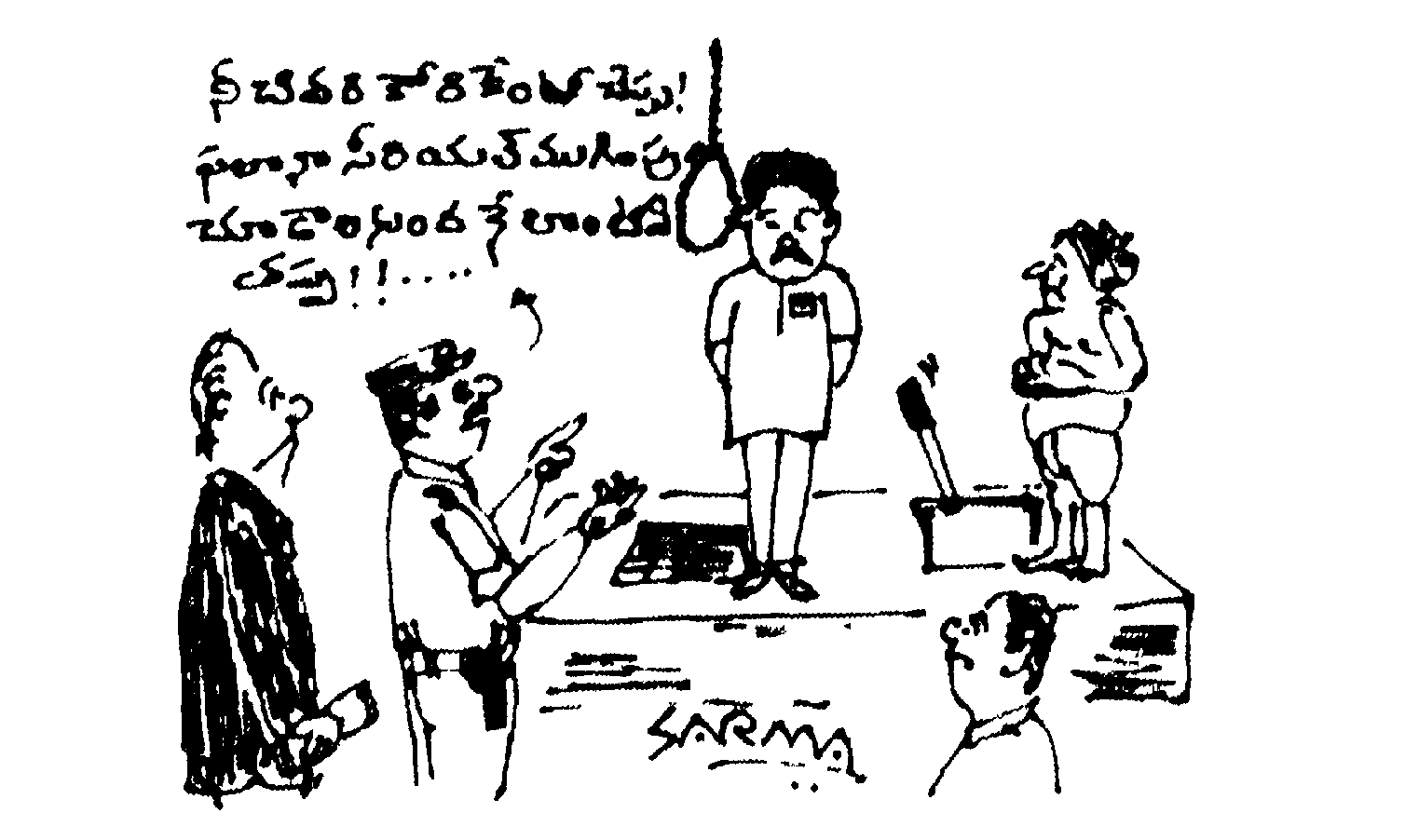 “ అలా కుదరదు.వాళ్ళందరికి పనిలేక అక్కడ నిలుచున్నారా ? అయినా ఎస్.ఐ. గారుండగా అని నేను చూడకూడదు రూల్సోప్పుకోవు. గాడిద పని గాడిదే చేయాలి " అన్నాడు కానిస్టేబులు.