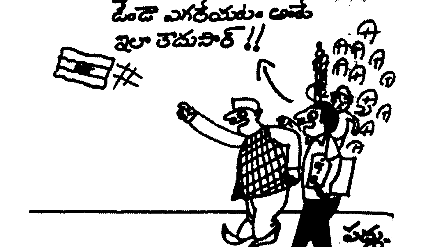 “ ఒరేయ్, టెలిగ్రాం సంగతి పక్కన బెట్టి నా నీ ప్రాణాలు కాపాడుకోరా.ఈ మేనకకు నీ మీద ఏ మాత్రం అభిమానం ఉన్నా నిన్నిలా బలిపీఠం ఎక్కించేది కాదు. కనీసం నీకు వీరతిలకం కూడా అద్డలేదు చూడరా.”