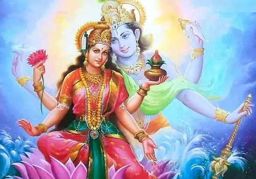 విష్ణువు, లక్ష్మి దేవిని పూజించడం: