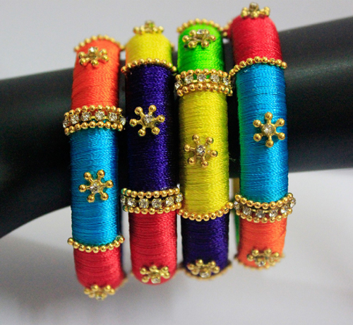 ఫ్యాషనబుల్ జ్యూయెలరీ దొరికే పలు షాపుల్లో ఈ గాజులు లభిస్తున్నాయి. ధర మరీ ఆకాశాన్ని అంటదు. అందుబాటులోనే ఉంటుంది. లేని రంగంటూ ఉండదు కాబట్టి మనం ధరించే ఏ రంగు దుస్తులకైనా నప్పే గాజుల జత తేలికగా దొరుకుతుంది. నిజానికి వీటిని సొంతగా కూడా తయారు చేసుకోవచ్చు. మధ్యలో ఓ ప్లాస్టిక్ గాజునో మట్టి గాజునో పెట్టి దానికి సిల్కు దారం చుట్టుకుంటూ పోవాలి. నచ్చిన సైజులోకి వచ్చాక ముడి వేసి.. నచ్చినట్టుగా రాళ్లు గానీ, పూసలు గానీ అతికించుకోవచ్చు. మరీ అంత కష్టం ఎందుకనుకుంటే హ్యపీగా కొనేసుకోండి. అందుబాటు ధరలో అందం దొరుకుతుందంటే సొంతం చేసుకోడానికి ఆలస్యం ఎందుకు చెప్పండి!