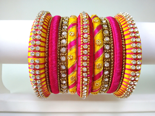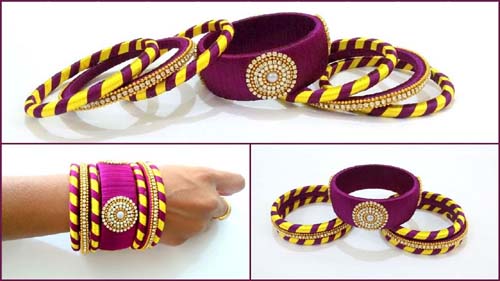 వీటిని చేయడానికి వాడింది కేవలం సిల్క్ దారం. అవును. సిల్కుదారాలతో నేసిన ఎన్ని దుస్తులు ధరించి ఉంటాం! కానీ ఇప్పుడు వాటితో గాజులు కూడా తయారు చేస్తున్నారు. సిలుకు తళుకుల్ని మరింత ఇనుమడింపజేయడానికి రాళ్లు, రవ్వలు అద్దుతున్నారు. రకరకాలు వర్ణాలు... ఎన్నో రకాల డిజైన్లు... చూసేకొద్దీ మనసు లాగుతుంది. వేసిన కొద్దీ మక్కువ పెరుగుతుంది.
